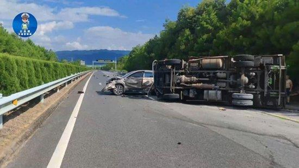 高速惊魂!司机随意变道,三车连撞致货车侧翻,教训
