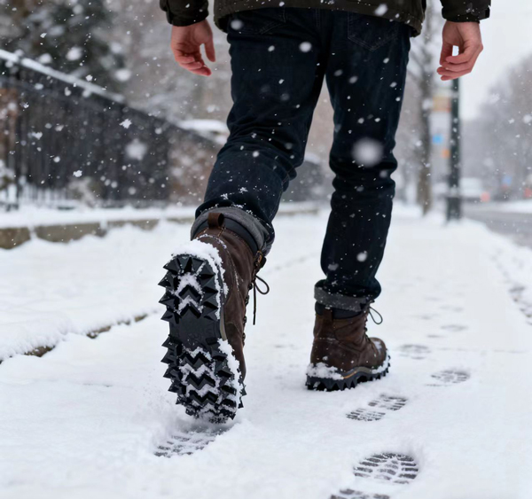 更换防滑鞋:雪天出行建议穿防滑鞋,如带有深花纹的橡胶底鞋,增加摩擦力。