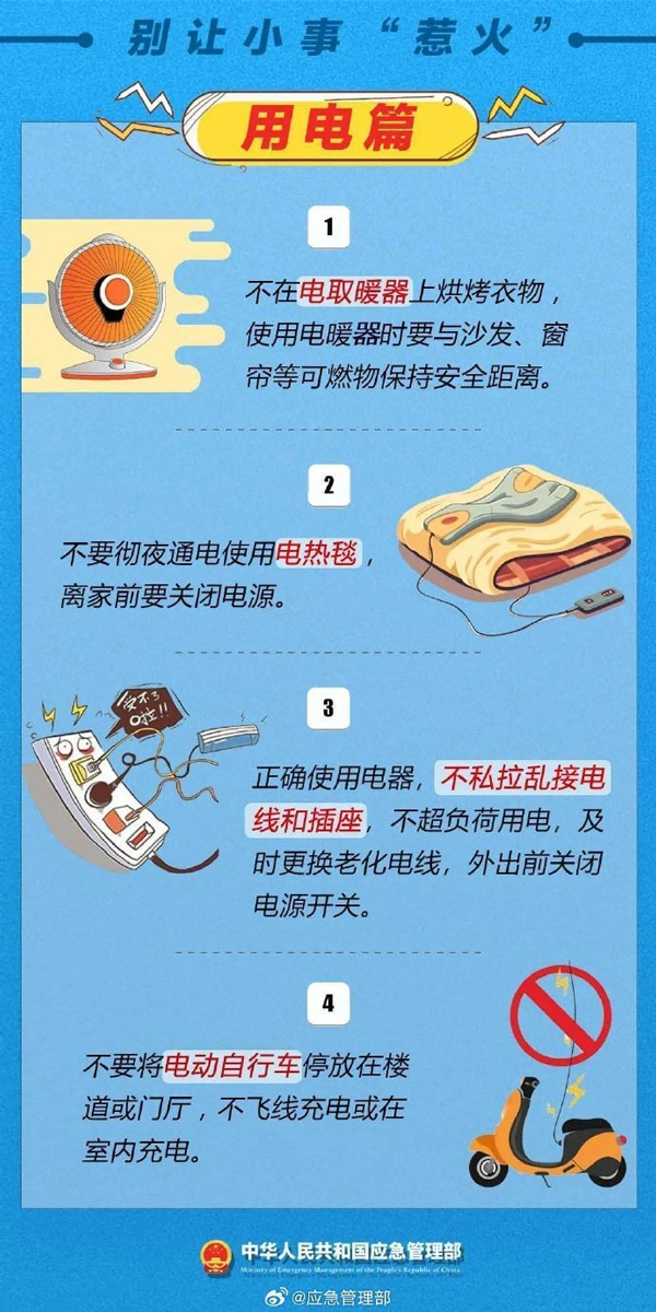 睡前断电:睡前务必关闭取暖设备,避免长时间无人看管引发火灾。
