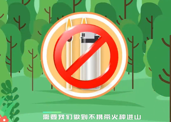 火种禁入山林:进山游玩、踏青,打火机、火柴等火种千万不能带,一旦引发火灾,后果不堪设想。