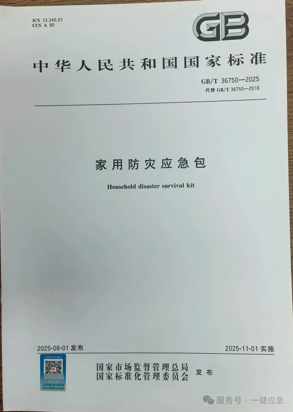 新版《家用防灾应急包》国家标准已于2025年11月1日正式实施。相较于旧版标准,新标准在分类配置、质量要求、物品性能及智能化水平等方面实现了全面升级。它首次将应急包划分为基础型和扩充型,并针对火灾、洪涝、地震三种典型灾害场景设计了专用物品组合,还新增了定位、报警等智能化功能建议。这些改进为家庭防灾应急提供了更加科学精准的指导依据。