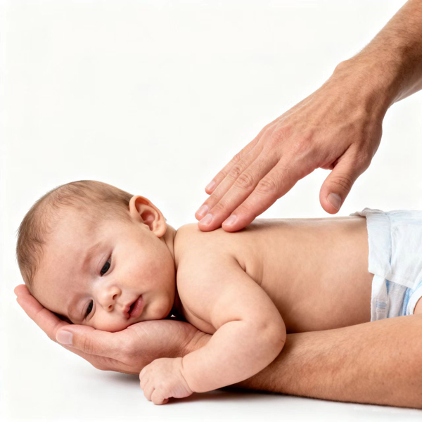 背部拍击:将婴儿面朝下放置在前臂上,头部低于身体,用掌根快速拍击肩胛骨之间5次。